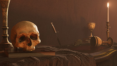 Still image using a mix of gathered and custom assets built and rendered inside of Maya.